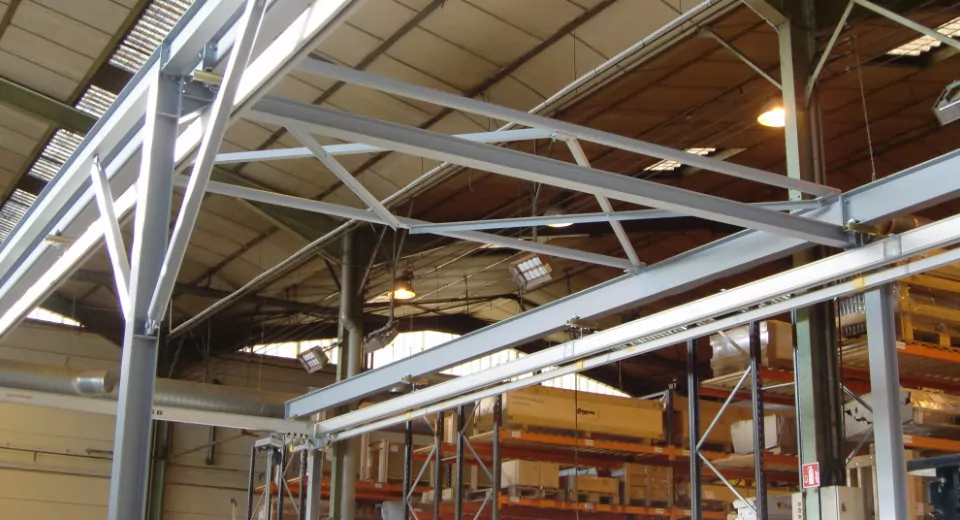 Dans le cas d’une charpente trop éloignée de la zone de manutention et levage, la solution est d’installer une structure autoportante, type portique.